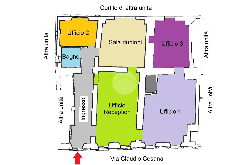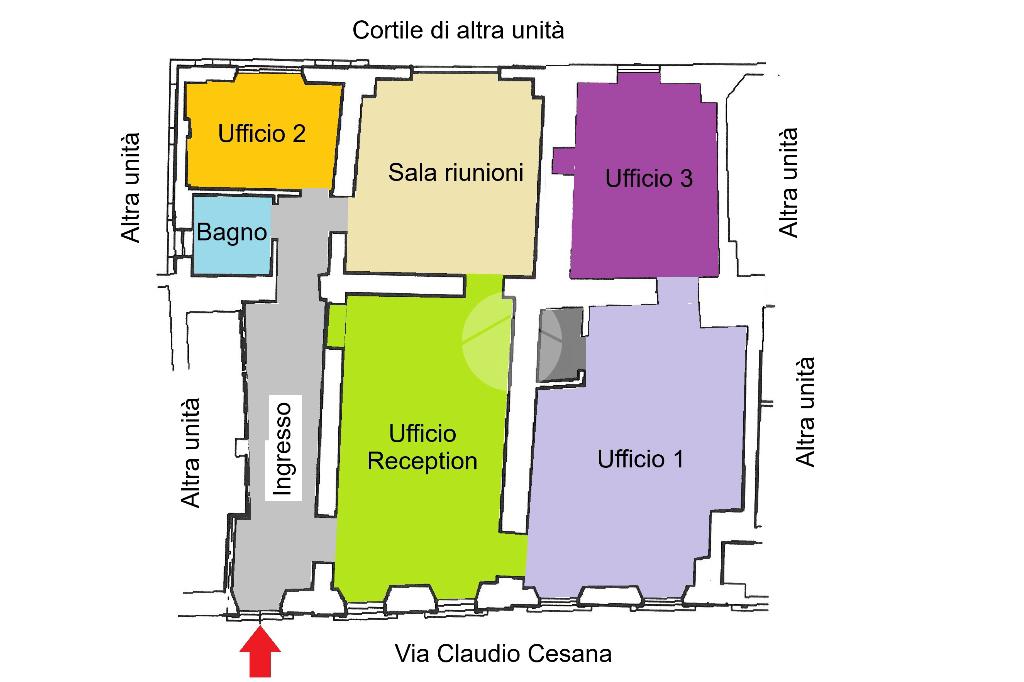 L’unità si distingue per la disposizione interna funzionale e versatile, composta da cinque locali ben distribuiti, facilmente adattabili a uffici operativi, sale riunioni, studi professionali o spazi di rappresentanza.