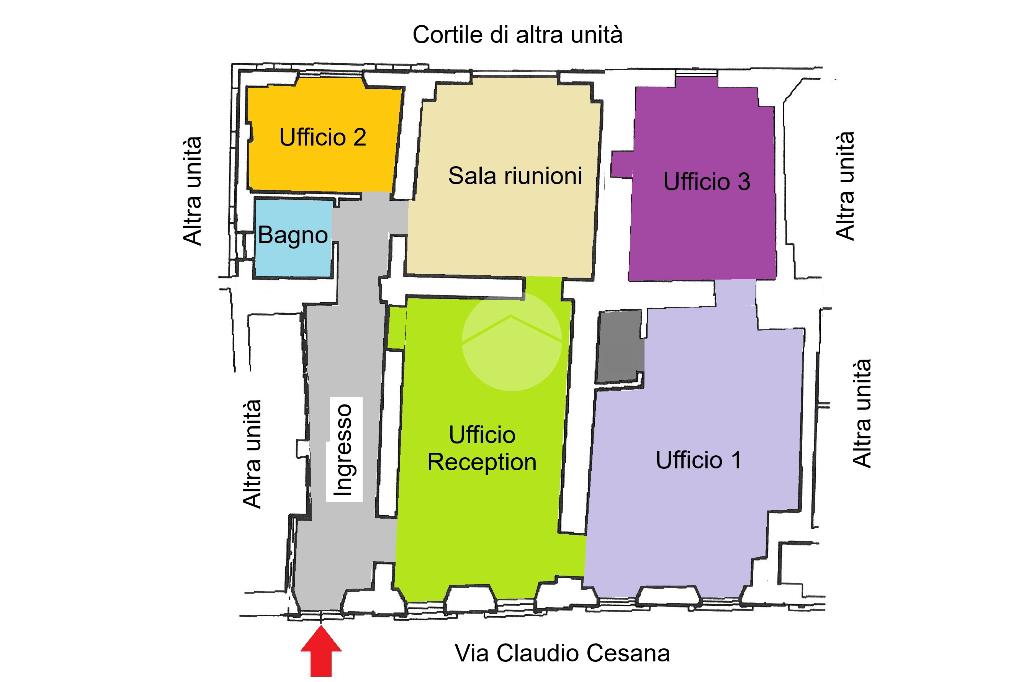 L’unità si distingue per la disposizione interna funzionale e versatile, composta da cinque locali ben distribuiti, facilmente adattabili a uffici operativi, sale riunioni, studi professionali o spazi di rappresentanza.